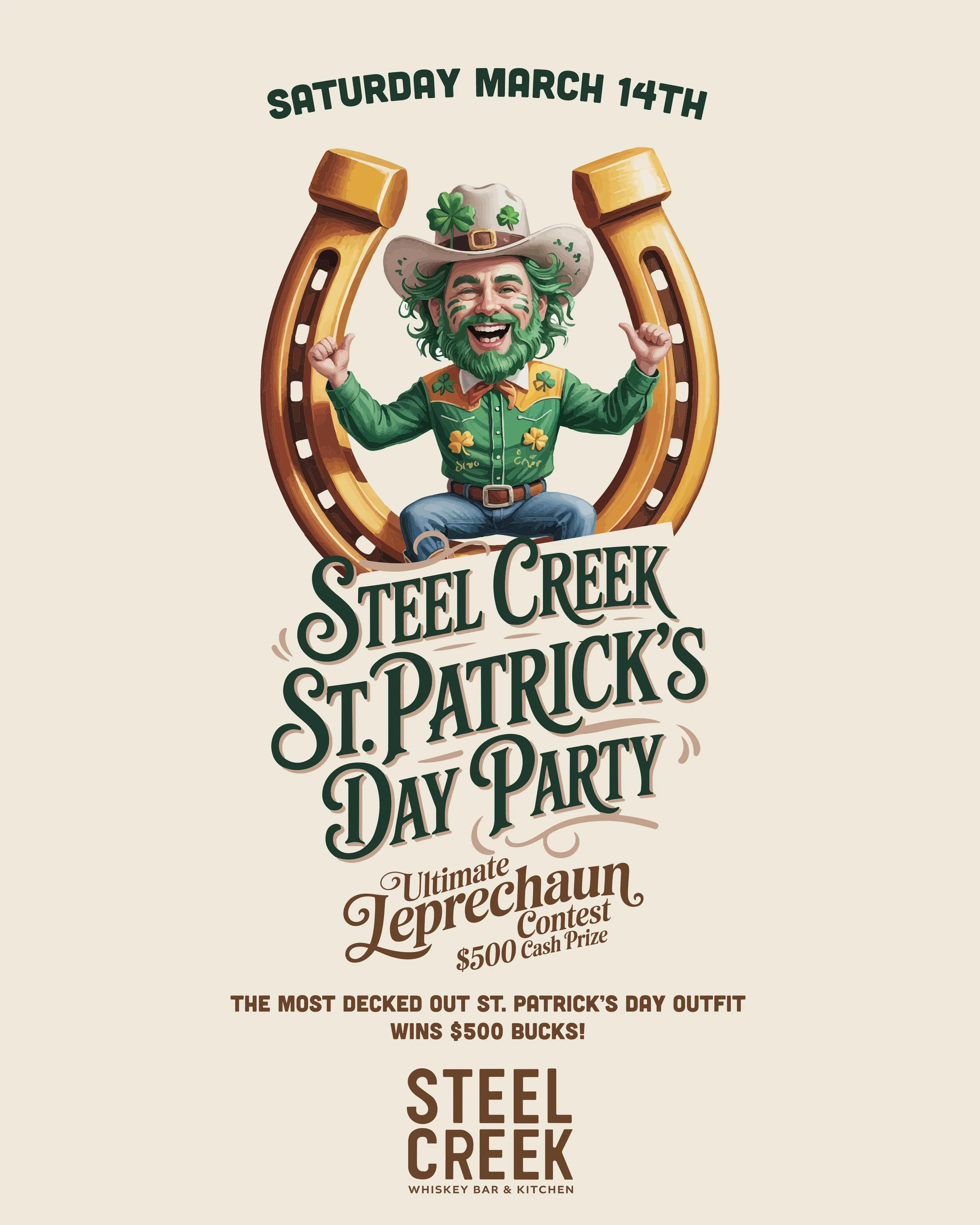 Get ready to go green and get lucky at Steel Creek’s Leprechaun Costume Contest! Show off your best St. Paddy’s Day-inspired look for a chance to win $500 in cash. Whether you go full leprechaun, deck yourself out in green, or get creative with the theme, here’s what you need to know: