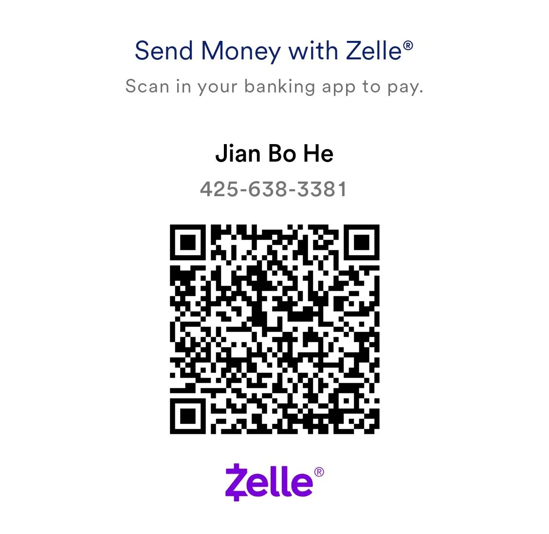 Pay via Venmo or Zelle