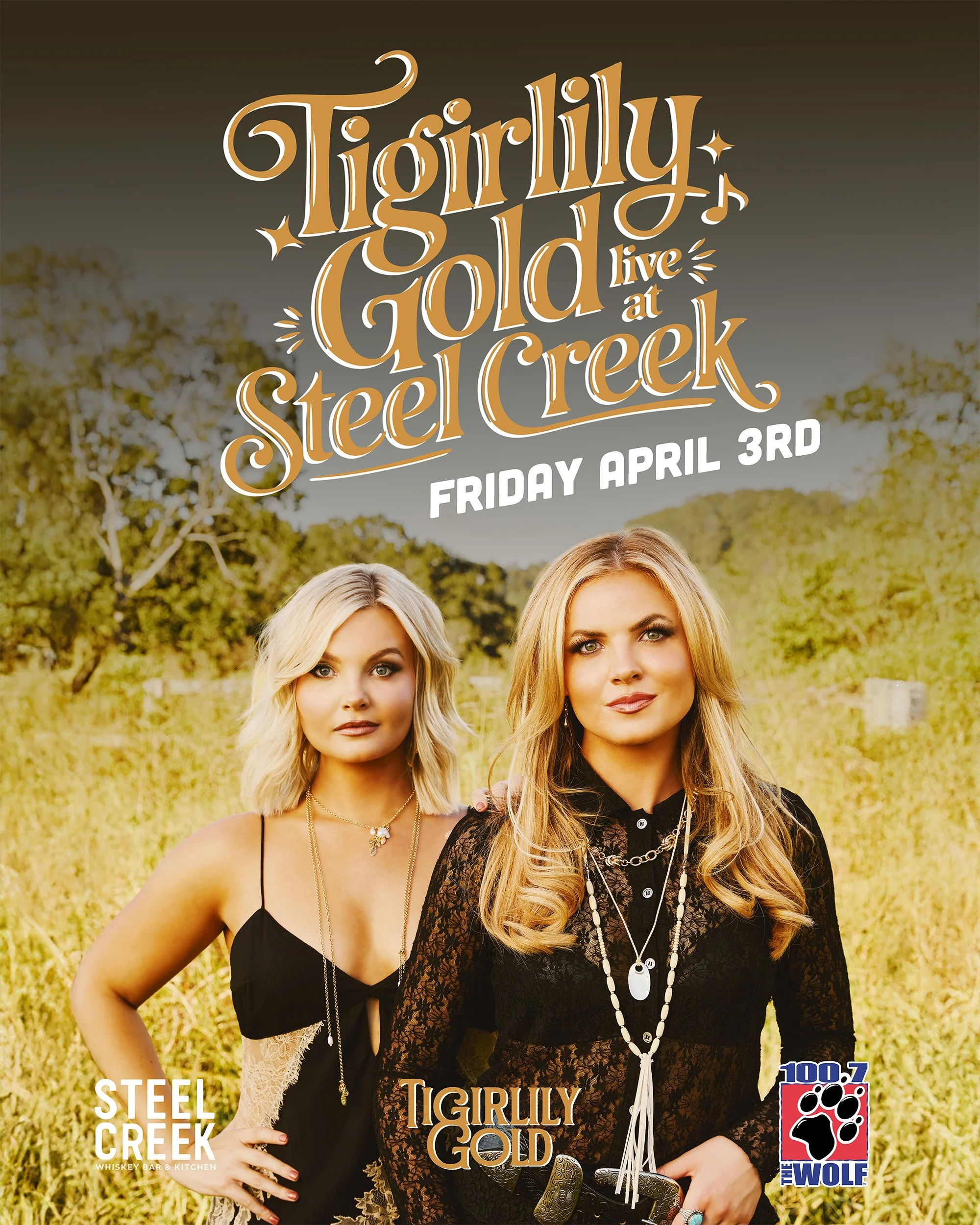 After signing with Monument Records, the duo released their debut album Blonde, featuring the Top 40 hit “Shoot Tequila” and the fan-favorite “I Tried A Ring On.” With multiple CMT and People’s Choice Country Award nominations and a win for 2024 ACM Award – New Duo of the Year, Tigirlily Gold continues to rise as one of country music’s most exciting breakout acts. From national television appearances to major media features and a growing catalog of new music, this is your chance to catch a fast-climbing country duo live, up close, and right here in downtown Tacoma at Steel Creek.